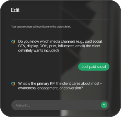 Turn messy client requests into briefs, budgets, and timelines - assisted by AI - and go from zero to production in minutes.
